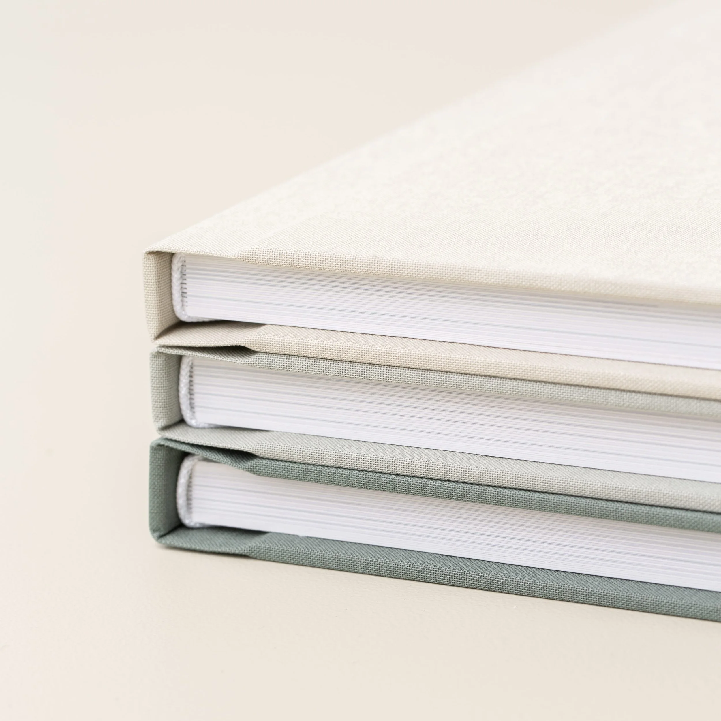 The Lite Album is a lay flat album featuring Classic Linen covers and photographic paper. Handcrafted details include thin spreads and cover boards, making it the perfect option for parents, guestbooks, and those looking for a more economical keepsake. Personalization options include a cover selection from the Classic Linen line, and standard debossing available blind or with silver, gold, or rose gold foil.